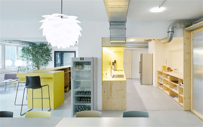 創(chuàng)始人創(chuàng)業(yè)公司是該空間的主要占用者,該空間設(shè)計(jì)為允許動(dòng)態(tài)數(shù)量的固定辦公桌和靈活的協(xié)同工作座椅,分為幾個(gè)不同的區(qū)域。同時(shí)還有幾個(gè)不同的會(huì)議空間和一個(gè)帶酒吧和設(shè)備齊全的廚房的大型開放公共區(qū)域。