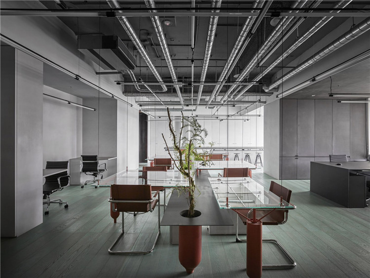 當靈感關鍵抓緊"科學"而非"辦公室",設計師希望強化產(chǎn)業(yè)屬性里的科學基底,扭轉(zhuǎn)一般人對辦公室的刻板藍圖.回歸產(chǎn)品本身最貼近的實驗室、工廠環(huán)境,日日可見的試管、生鐵黑鐵、氣體輸送管,以及包裝承載科技氣體的獨特鋼瓶,擷取生產(chǎn)鏈上再熟悉不過的材質(zhì)與造型,拆解轉(zhuǎn)換成辦公空間的結(jié)構(gòu)形體.