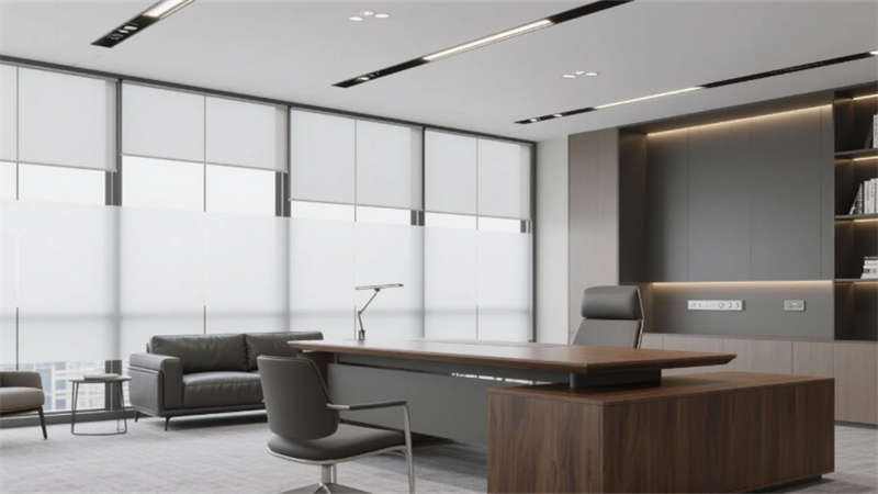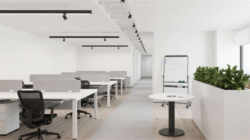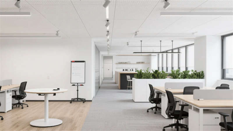 室內(nèi)空間延續(xù)外立面設(shè)計語言,企業(yè)大堂通過技術(shù)創(chuàng)新實(shí)現(xiàn)淺白大理石與木紋墻面的無縫拼接,懸浮式線性燈光系統(tǒng)可隨自然光線智能調(diào)節(jié)色溫。開放式辦公區(qū)配置智慧化模塊組合,可升降桌體與軌道射燈靈活適配多元場景,協(xié)作島集成無線充電與環(huán)境感知功能。高管辦公室采用智能霧化玻璃隔斷,實(shí)現(xiàn)隱私與通透的自由切換。科技會議室搭載高清透明顯示系統(tǒng)與多聲道聲學(xué)設(shè)備,電動百葉簾與補(bǔ)光系統(tǒng)聯(lián)動打造智能會議環(huán)境。