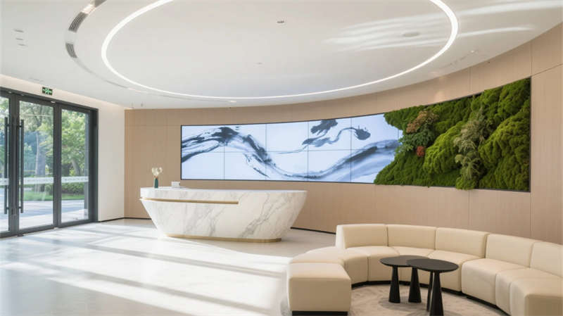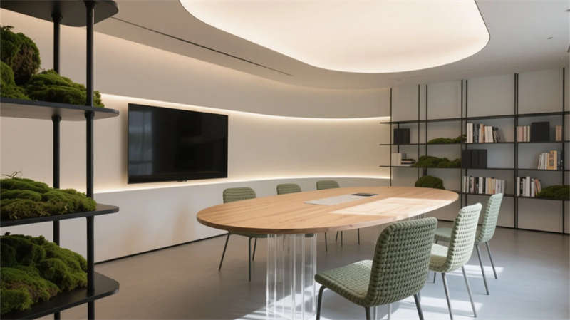 智能接待廳以流動數字藝術傳遞先鋒調性,而健康茶水間則通過有機材質與綠植裝置,構建松弛有度的能量補給站。整體空間拒絕刻板分割,家具模塊可隨需求自由重組,金屬線條與低飽和色彩在自然光照下沉淀出理性而溫潤的質感。