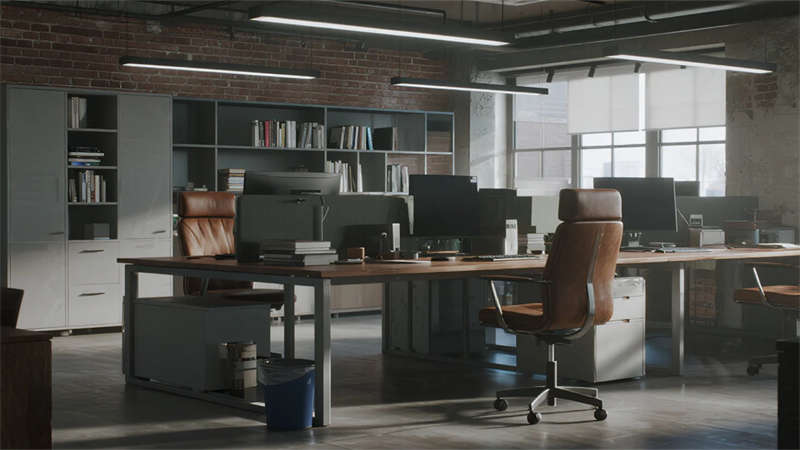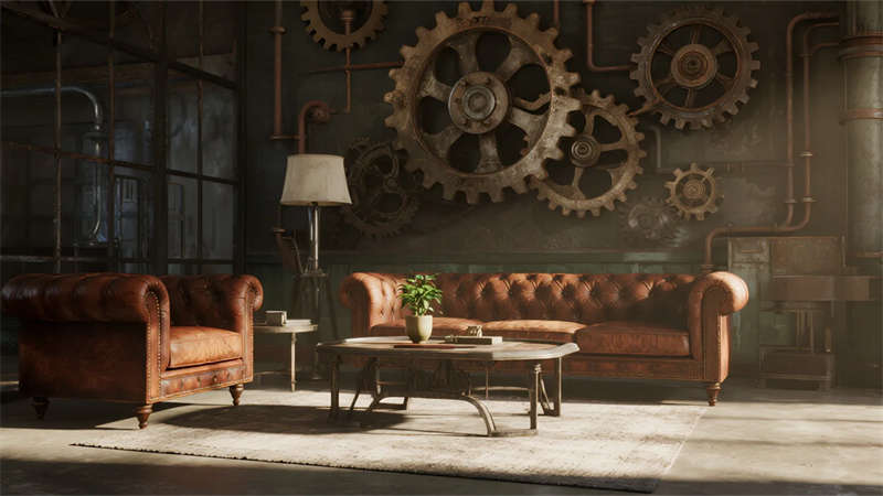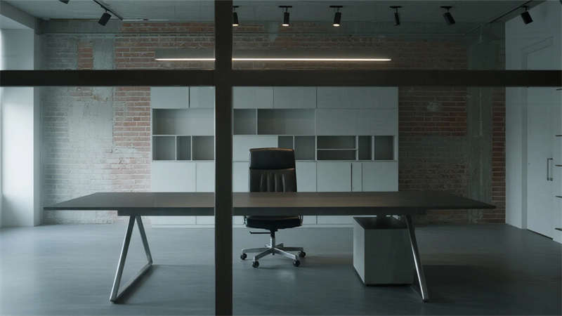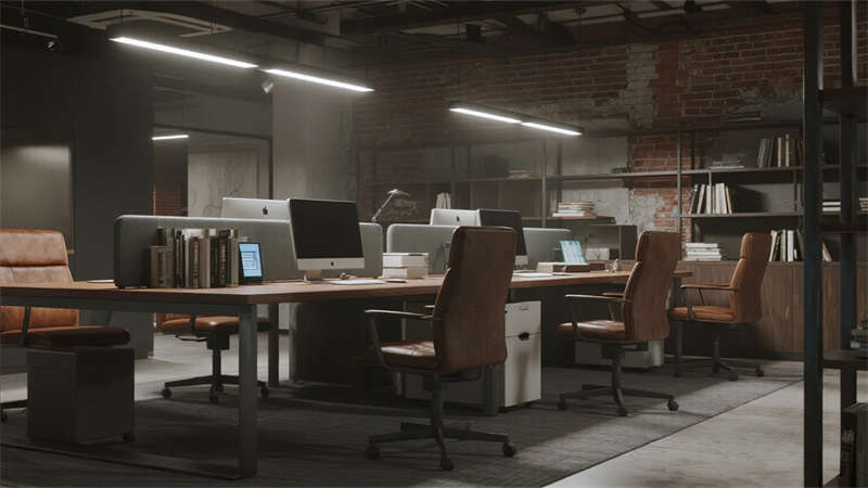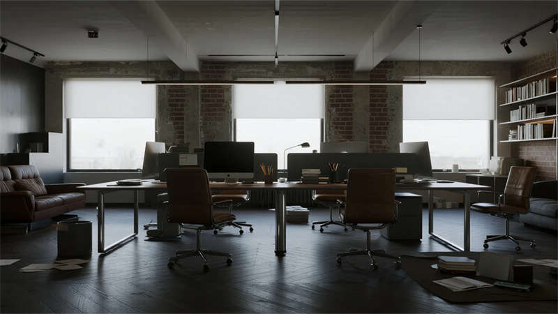 這組工業(yè)風(fēng)辦公室設(shè)計以裸露結(jié)構(gòu)和復(fù)古質(zhì)感為核心,通過混凝土、金屬和木質(zhì)材料的碰撞,打造出兼具實用性與藝術(shù)感的辦公空間。空間保留了建筑的原始肌理,如天花板的管線和墻面的磚紋,搭配黑色鐵藝家具和深色調(diào)軟裝,營造出冷峻而富有張力的氛圍。局部通過皮質(zhì)沙發(fā)、綠植和暖光燈具軟化工業(yè)風(fēng)的硬朗感,增添人文氣息。