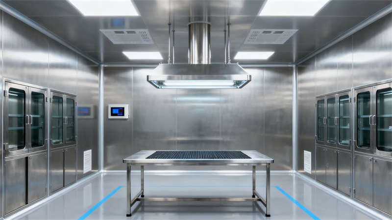 室內(nèi)空間圍繞醫(yī)療器械生產(chǎn)需求展開,各區(qū)域設(shè)計(jì)既適配功能,又保持視覺統(tǒng)一。無菌組裝區(qū)域選用無縫潔凈材質(zhì),避免積塵殘留,保障生產(chǎn)環(huán)境;精密檢測(cè)區(qū)側(cè)重隔音與光線控制,為檢測(cè)工作營(yíng)造低干擾氛圍;原料倉(cāng)儲(chǔ)區(qū)以規(guī)整的貨架布局,適配物料存放需求;研發(fā)實(shí)驗(yàn)室設(shè)置島式實(shí)驗(yàn)臺(tái)與通風(fēng)柜,兼顧實(shí)驗(yàn)操作與中試功能;潔凈走廊通過指引設(shè)計(jì)明確人流物流方向,確保流程有序;無菌更衣區(qū)按潔凈流程分區(qū),實(shí)現(xiàn)人員潔凈過渡;中控室以核心監(jiān)控設(shè)備為中心,方便實(shí)時(shí)掌握廠房運(yùn)行狀態(tài)。