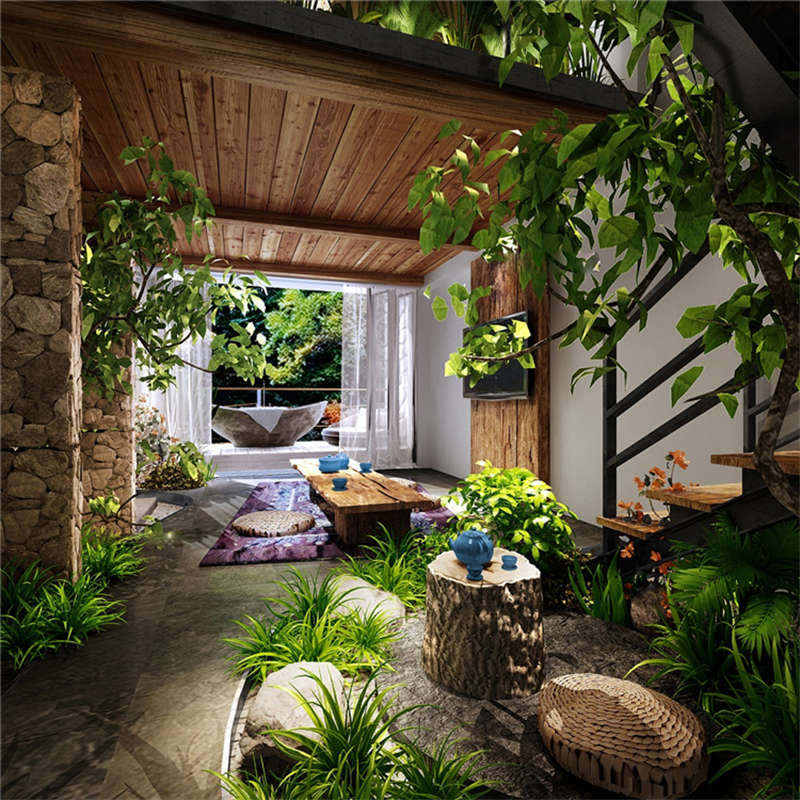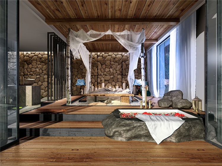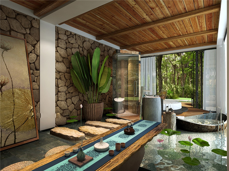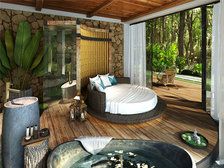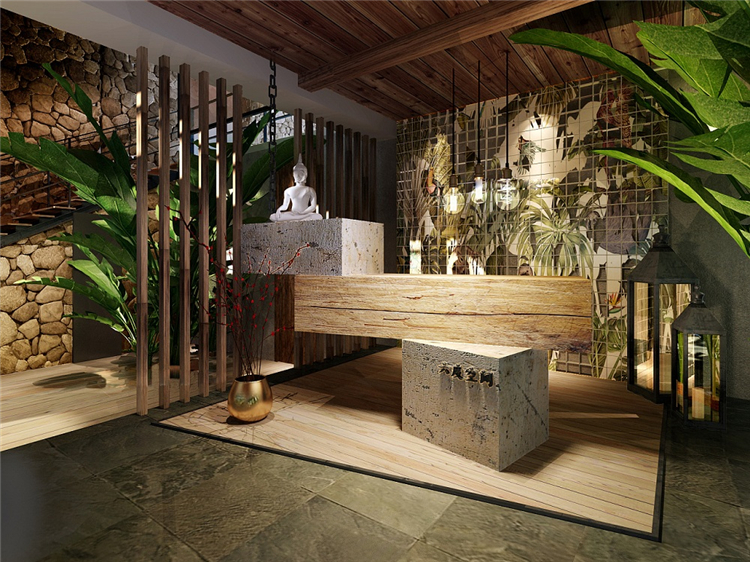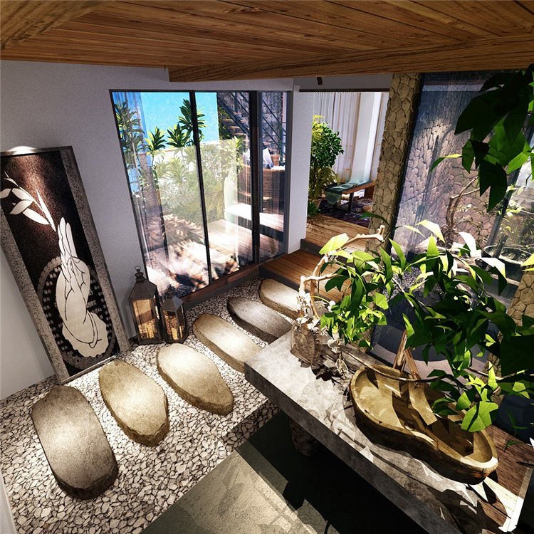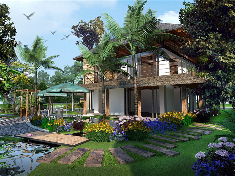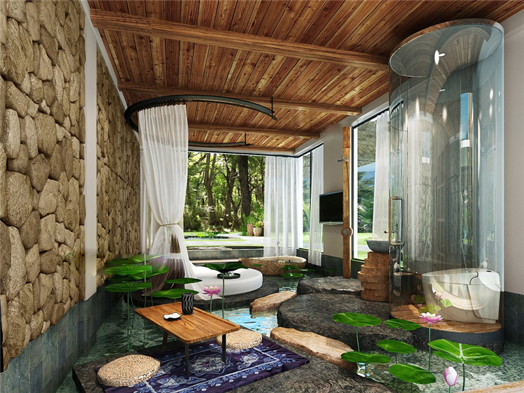 本案民宿度假酒店采用東南亞裝飾設(shè)計(jì)風(fēng)格