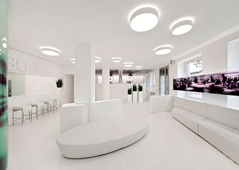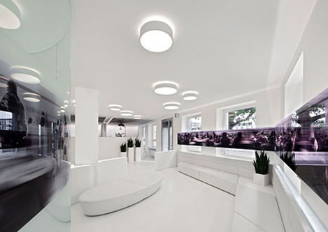 設(shè)計理念:牙科診所最終還是歸屬醫(yī)院范疇,給病人治病的。只是牙科診所可以在裝修上比醫(yī)院有更多的想法和創(chuàng)意的設(shè)計元素在里面。白色的地磚灰色的座椅使空間設(shè)計更嚴(yán)謹(jǐn),傳遞出一種信任感并營造出臨床氛圍。