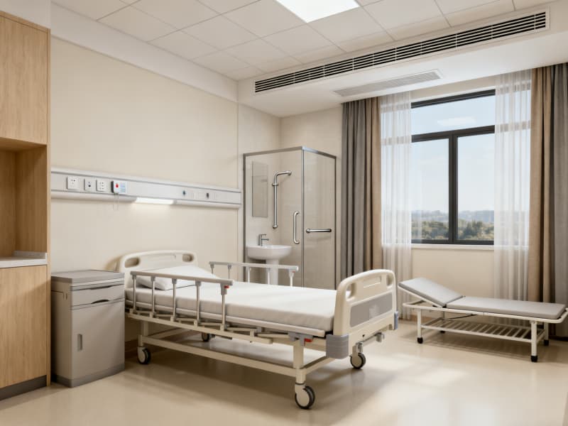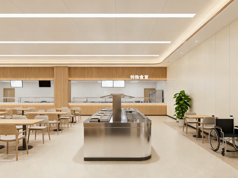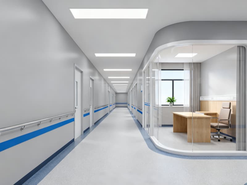 同時(shí),通過三大核心設(shè)計(jì)傳遞療愈感:①色調(diào)上以米白、淺灰、原木色為主,搭配藍(lán)色點(diǎn)綴,避免冰冷刺激;②材質(zhì)上選用醫(yī)用級(jí)環(huán)保、防污、防滑材料,兼顧安全與舒適;③元素上融入自然綠植、柔和燈光、圓角設(shè)計(jì)等,緩解患者就醫(yī)焦慮。?