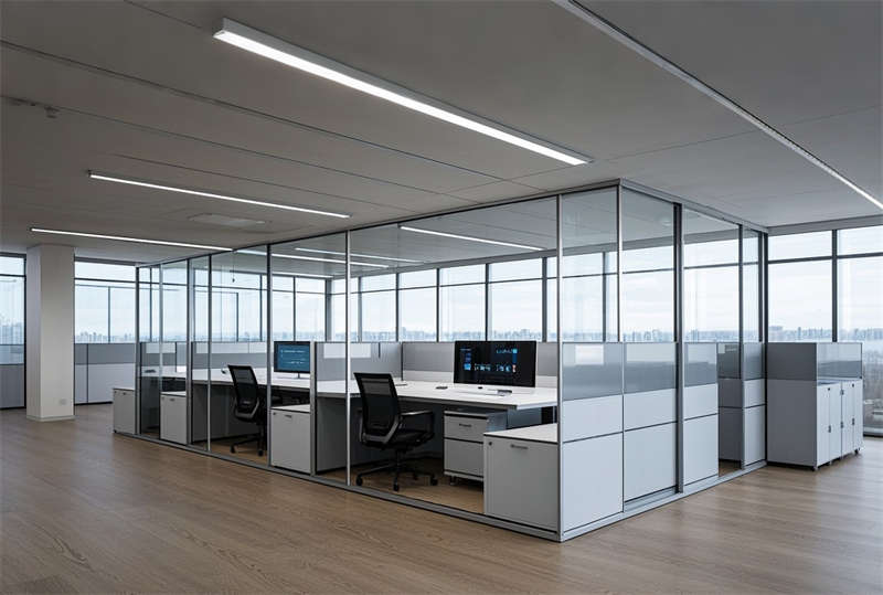 本案為 6000 平方米現(xiàn)代化科技辦公樓裝修項(xiàng)目,設(shè)計(jì)采用 ' 未來(lái)辦公生態(tài) ' 理念,以藍(lán)灰主色調(diào)構(gòu)建專(zhuān)業(yè)商務(wù)氛圍。空間規(guī)劃突破傳統(tǒng)格局,大堂設(shè)置 10 米挑空 LED 藝術(shù)裝置墻,智能光控系統(tǒng)實(shí)現(xiàn)晝夜模式切換。開(kāi)放式辦公區(qū)采用模塊化組合家具,集成無(wú)線(xiàn)充電、智能升降等人性化功能。會(huì)議室配置可觸控霧化玻璃隔斷系統(tǒng),實(shí)現(xiàn)空間靈活轉(zhuǎn)換。特別設(shè)計(jì)的階梯會(huì)議中心配備全景聲控系統(tǒng),墻面采用吸音穿孔鋁板確保會(huì)議私密性。環(huán)保理念貫穿始終,選用零甲醛板材和可回收地毯,屋頂花園配置雨水收集系統(tǒng)。燈光設(shè)計(jì)采用色溫可調(diào) LED 光源,通過(guò)智能中控系統(tǒng)實(shí)現(xiàn)場(chǎng)景模式一鍵切換,打造高效、舒適、可持續(xù)發(fā)展的新型辦公生態(tài)圈。