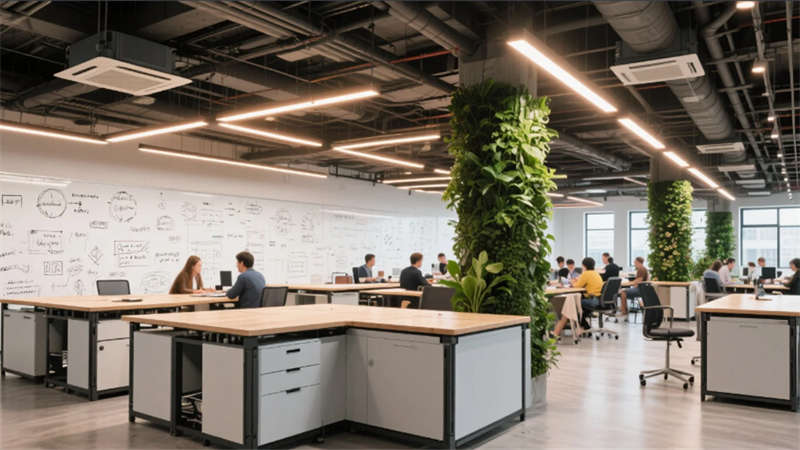 材質(zhì)語(yǔ)言融合再生木材、透光混凝土與啞光金屬,綠植從垂直墻面蔓延至懸浮花池,消解科技空間的冷感。全樓如同一臺(tái)精密而溫潤(rùn)的有機(jī)生命體,以空間激發(fā)算法創(chuàng)新者的靈感流動(dòng),在江淮大地締造一座會(huì)呼吸的智慧燈塔。