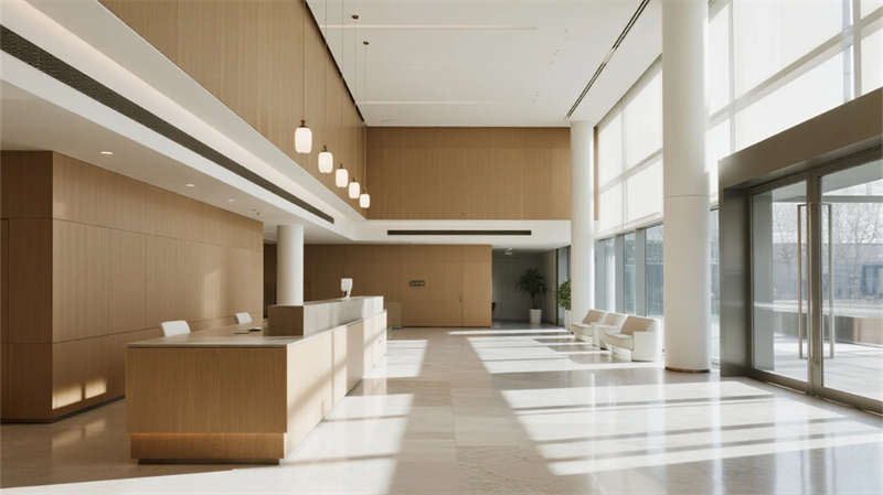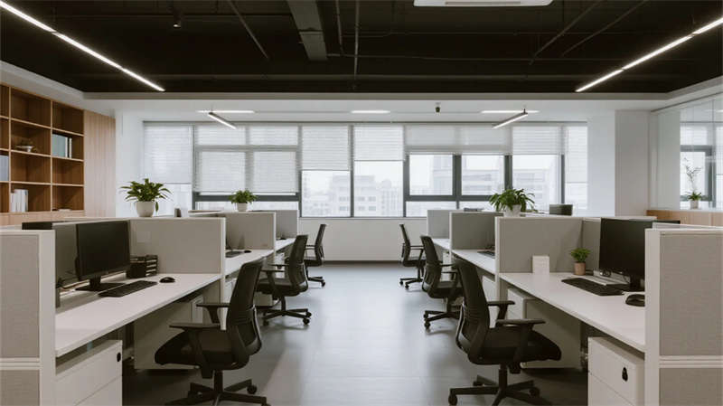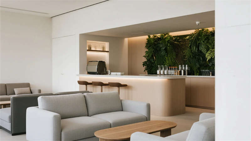 本辦公樓設(shè)計(jì)以現(xiàn)代簡(jiǎn)約美學(xué)為基調(diào),營(yíng)造出寧?kù)o而高效的商務(wù)環(huán)境。建筑外觀采用純凈的玻璃幕墻與利落線條,在光影交錯(cuò)中呈現(xiàn)輕盈通透的視覺(jué)體驗(yàn);步入大廳,淺色石材與溫潤(rùn)木質(zhì)元素相融,挑高空間與落地窗引入豐沛自然光,傳遞開(kāi)放包容的氛圍。內(nèi)部功能區(qū)布局注重人性化:開(kāi)放式辦公區(qū)以靈活隔斷促進(jìn)協(xié)作,綠植點(diǎn)綴為空間注入生機(jī);簡(jiǎn)約會(huì)議室配備智能設(shè)施,滿足高效溝通需求。員工休憩區(qū)與樓頂花園成為亮點(diǎn)——前者以暖色調(diào)家具打造社交角落,后者則用木質(zhì)平臺(tái)、綠籬與城市天際線共構(gòu)都市綠洲,讓工作者在忙碌之余俯瞰風(fēng)景、釋放壓力。電梯廳與衛(wèi)浴空間延續(xù)統(tǒng)一設(shè)計(jì)語(yǔ)言,細(xì)節(jié)處體現(xiàn)精致工藝。整體設(shè)計(jì)將自然、光感與簡(jiǎn)約哲學(xué)交織,創(chuàng)造一處兼具理性效率與人文溫度的辦公場(chǎng)所。