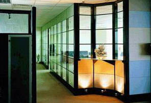 彩色玻璃隔斷是以彩藝玻璃作一種隔斷主體,主要是利用玻璃色彩變幻,營造出非凡藝術效果的辦公室隔斷,選用彩色玻璃隔斷時,最重要的是色調(diào)要與辦公室的整體裝飾設計風格保持一致。