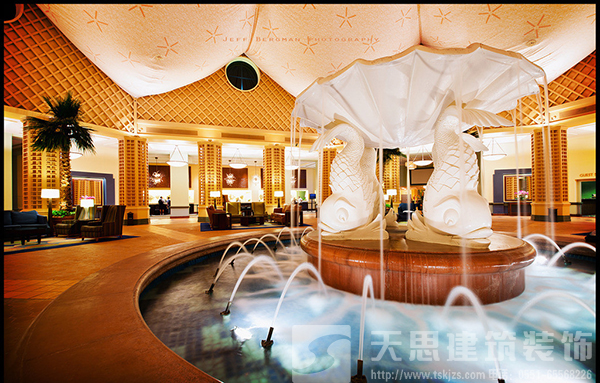 讓客戶有切實的體驗感受.這些是要依據(jù)道具和設(shè)計理念的配合才能做到的。每個會所裝飾裝修設(shè)計要求都會有所不同,有些要求一種浮雕面磚,獲得更好的裝飾藝術(shù)效果;有些要求重量輕,隔音,保溫,而且長期使用不退色。這些會所裝飾裝修的風(fēng)格與建筑功能只有根據(jù)自身的需要和材料的特性才能打造一個舒適的環(huán)境。現(xiàn)在常用到的材料有木材、砂石、纖維、玻璃、彩色不銹鋼板等原料制成的裝飾裝修材料,這些材料給人的感覺自然質(zhì)樸而受到人們的青睞;而那些經(jīng)過化工原料合成的室內(nèi)裝飾裝修材料,則顯得不怎么熱捧。