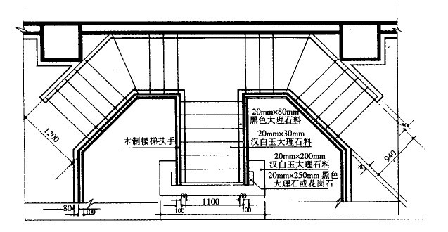 材料的數(shù)量,這是一幅樓梯的平面布置圖,結(jié)構(gòu)比較簡單而且使用的裝飾材料比較少,所以圖中同事包含了裝飾