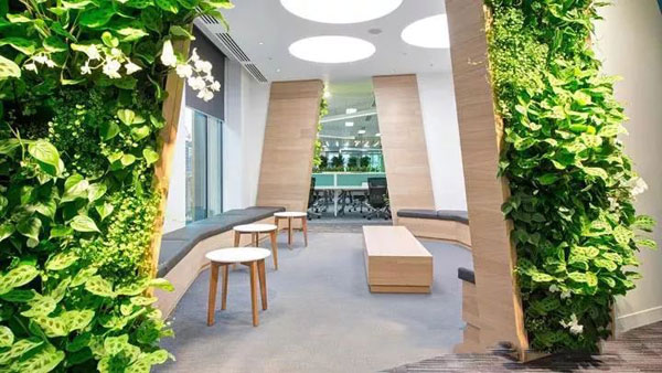 小編認為最有趣的是傾斜感的墻體圍合出的相對獨立的休閑區(qū),入口兩側(cè)是繁茂的垂直綠植裝飾讓這里別有洞天。開敞的落地玻璃窗讓這里滿室生輝,手捧一杯醇香的咖啡坐在窗邊是何等的心曠神怡,活力滿滿!