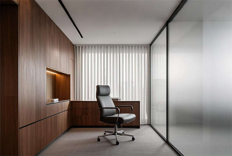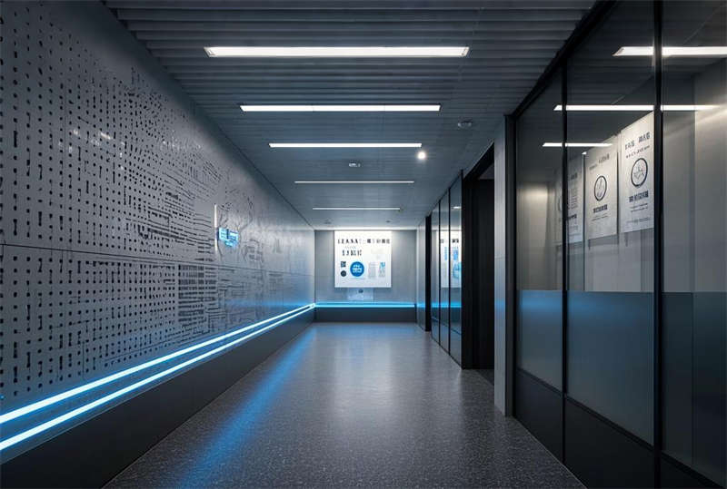 本 5000 平現(xiàn)代輕奢辦公室設(shè)計(jì)采用淺灰、暖白、深藍(lán)三主色系,融合金屬與玻璃材質(zhì)凸顯科技感。空間規(guī)劃注重功能分區(qū)與動(dòng)線流暢,前廳大氣 LOGO 墻奠定企業(yè)形象,開(kāi)放式辦公區(qū)采用模塊化組合提升協(xié)作效率。智能會(huì)議室配備先進(jìn)影音系統(tǒng),總經(jīng)理室通過(guò)材質(zhì)搭配彰顯商務(wù)氣質(zhì)。休息區(qū)綠植墻與霧化系統(tǒng)營(yíng)造舒適環(huán)境,走廊導(dǎo)視燈帶增強(qiáng)空間導(dǎo)向性。獨(dú)立辦公室采用電動(dòng)霧化玻璃兼顧隱私與通透,培訓(xùn)室靈活隔斷滿足多種使用需求。茶水間設(shè)備齊全提升員工幸福感,電話間吸音處理保障溝通質(zhì)量。整體設(shè)計(jì)在嚴(yán)謹(jǐn)辦公氛圍中融入人文關(guān)懷,通過(guò)燈光層次與材質(zhì)對(duì)比打造現(xiàn)代高效的辦公空間。