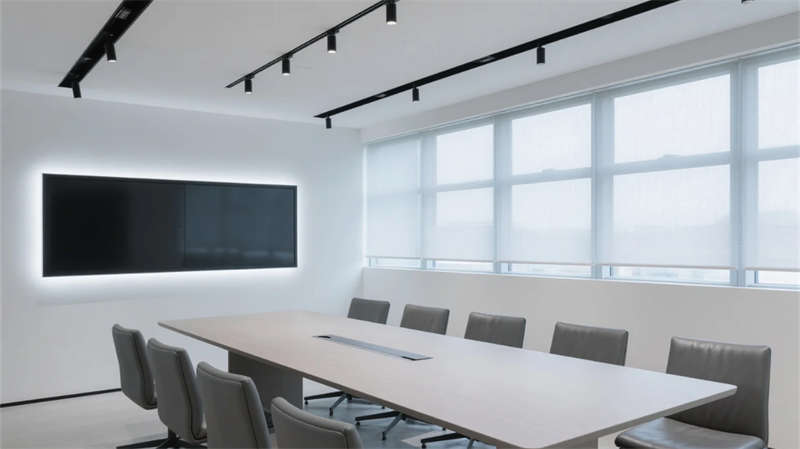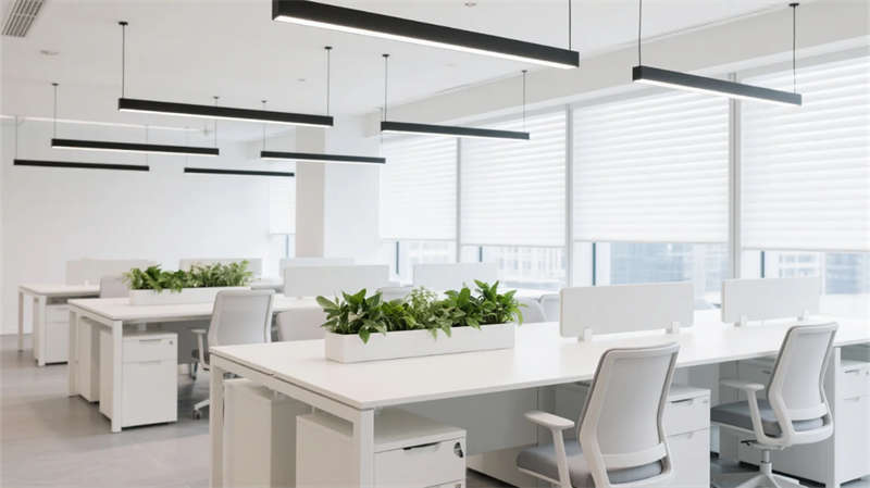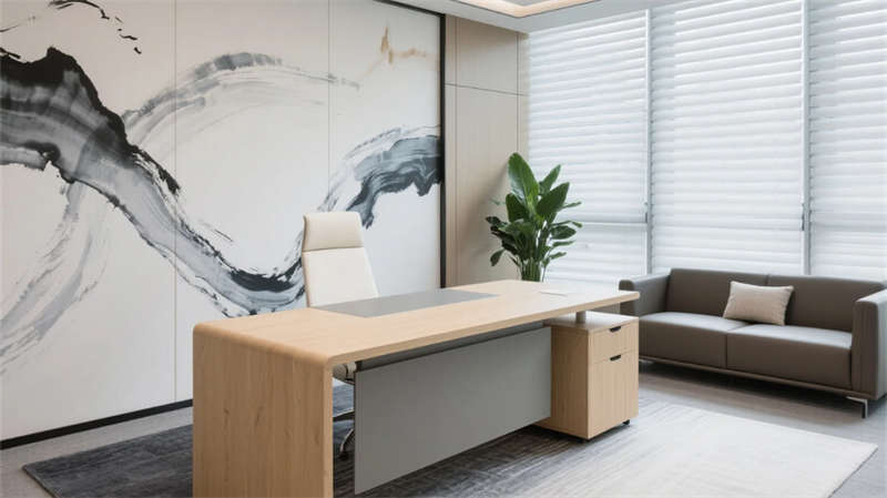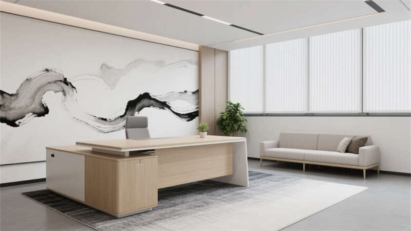 該設(shè)計(jì)以現(xiàn)代簡約語言重構(gòu)辦公空間秩序,通過光影與材質(zhì)的精妙平衡,營造滁州商務(wù)美學(xué)的當(dāng)代樣本。空間以淺木、暖灰與啞光白為主調(diào),線性光帶貫穿各區(qū)域,形成視覺連續(xù)性。開放辦公區(qū)借落地窗引入瑯琊山景光影,百葉簾調(diào)節(jié)自然與人工光的韻律;協(xié)作區(qū)弧形沙發(fā)與綠植墻柔化幾何理性,激發(fā)團(tuán)隊(duì)創(chuàng)造力。