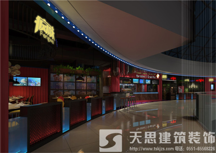 設(shè)計(jì)公司:安徽天思建筑裝飾設(shè)計(jì)部 項(xiàng)目名稱(chēng):魚(yú)念蝦香辣蝦+一根面設(shè)計(jì)效果 項(xiàng)目面積:600平方 設(shè)計(jì)師:陳工 項(xiàng)目地址:合肥馬鞍山路與南二環(huán)路交口伽僑廣場(chǎng)