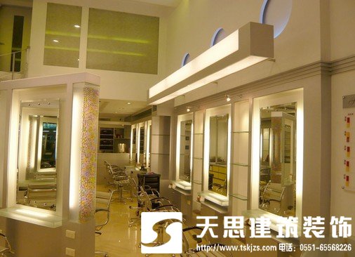 美發(fā)區(qū)是美發(fā)店裝修的重中之重。在保證干凈整潔的基礎(chǔ)上,給簡單的鏡子和椅子組合而成的美發(fā)區(qū)增添特色。把美發(fā)區(qū)的鏡子打破傳統(tǒng)的四方形形狀,安上扇形的鏡子,讓人眼前一亮。鏡子旁邊的墻壁也不能忽視,可以貼上一些有趣的圖案不顯單調(diào)。燙染區(qū)以繽紛的色彩,簡潔的風格將色彩最大化,以顯示多種顏色與風格,設(shè)計以不銹鋼與玻璃突出其美感。燙染區(qū)的色吧造型應(yīng)以時尚、前衛(wèi)、強烈色彩為主導。洗頭區(qū)及沖水區(qū)應(yīng)以干凈明快為主題來設(shè)計,墻面用噴漆玻璃來做裝飾,讓顧客對本店感受到潔凈的形象。產(chǎn)品區(qū)應(yīng)該分洗護產(chǎn)品及燙染產(chǎn)品,而且產(chǎn)品展示的位置應(yīng)該明確區(qū)分開來。