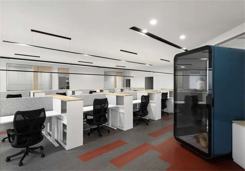 由于律師日常工作需要經(jīng)常打電話的原因,設(shè)計(jì)師設(shè)置了4臺(tái)不同的顏色靜音倉,讓員工得以在安靜的環(huán)境中進(jìn)行電話交談,同時(shí)不會(huì)干擾到其他同事辦公。
