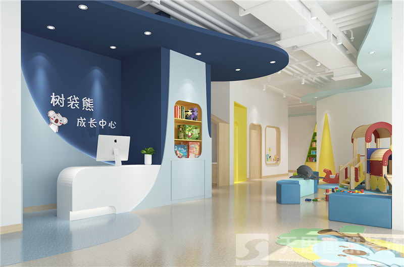 如果早教親子教室空間較小,可以使用冷調(diào)的顏色能使房間顯得更大,但也會過于生冷,故可以使用“烘烤”色調(diào),使用飽和度低的暖色調(diào)。綠色象征著生命,在裝修時可以配上一些花草樹木等自然元素,讓孩子能更好的親近自然,感受自然。而藍色象征著純潔,采用大海、天空的主題,可以讓孩子的視野更加寬闊,通過海洋、天空來營造一種輕松舒適的感覺,這種色彩下能更好的激發(fā)孩子的活躍思維。
