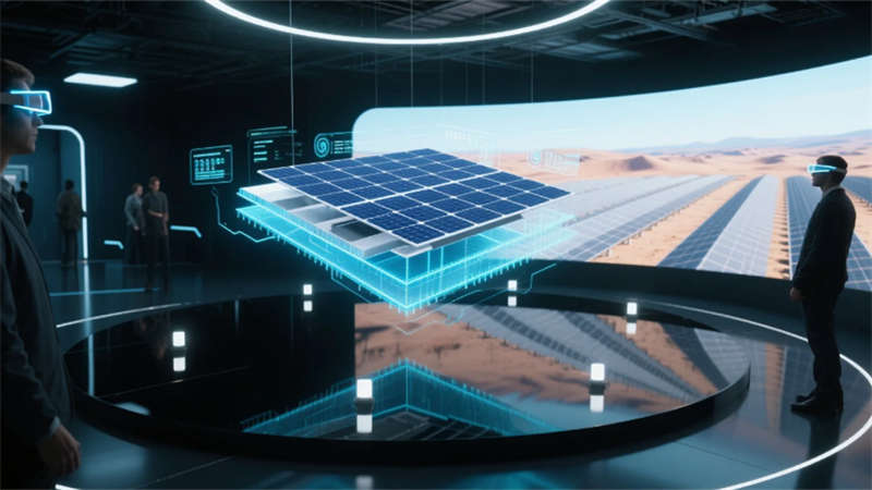 技術(shù)展廳打破虛實(shí)界限,光伏組件剖面的微光粒子在AR交互中躍動(dòng),沙漠電站的全息投影與真實(shí)光照系統(tǒng)共舞。研發(fā)中心的螺旋實(shí)驗(yàn)臺(tái)如基因鏈盤(pán)旋上升,透明隔離門(mén)映出窗外光伏屋頂?shù)牟y光影,潔凈度標(biāo)識(shí)在氣流中浮沉若星。