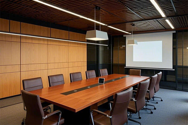 中餐廳將現(xiàn)代簡約與中式傳統(tǒng)完美融合,木質(zhì)屏風與簡約吊燈相映成趣,暖色調(diào)燈光為用餐氛圍增添一份溫馨。無論是家庭聚餐還是商務宴請,這里都能滿足您的需求。會議室則配備了先進的智能會議系統(tǒng),簡約大氣的設計風格與高效的商務功能相結合,為您提供理想的辦公環(huán)境。