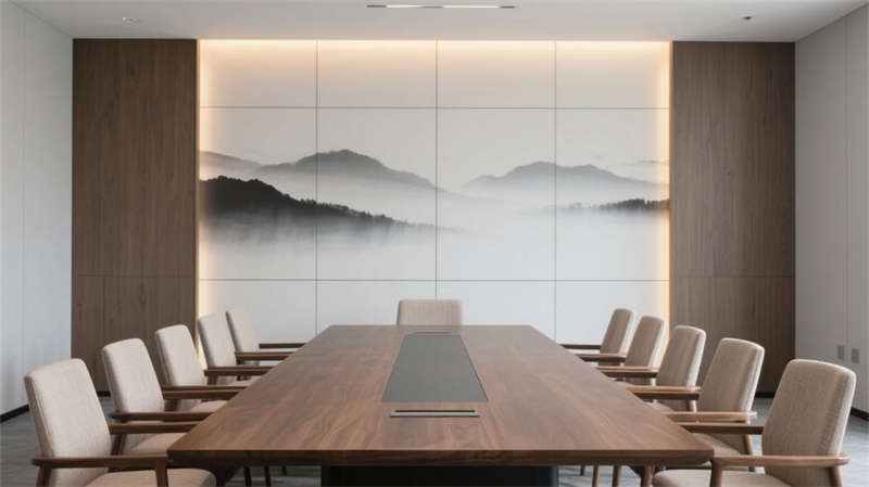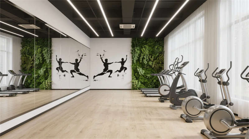 健身區(qū)與會(huì)議室平衡功能與美學(xué),金屬器械融入水墨肌理,會(huì)議長(zhǎng)桌呼應(yīng)胡桃木的溫潤(rùn)質(zhì)感。整體設(shè)計(jì)弱化邊界,讓光、影、材質(zhì)在流動(dòng)中對(duì)話(huà),為合肥注入一處隱于城市的東方精神綠洲。