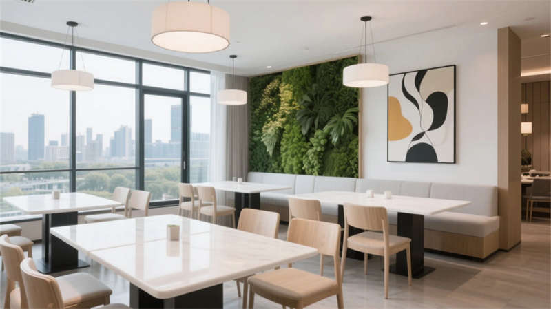 從大堂至客房,落地窗最大限度引入天光,中性色調(diào)與淺木元素構(gòu)成溫暖基底。餐廳與酒吧的開放式布局促進社交,而水療中心的弧形理療床和間接光源則傳遞靜謐療愈力。健身房與泳池區(qū)通過鏡面、綠植墻和通透玻璃,模糊室內(nèi)外界限。走廊的設(shè)計進一步強化了空間的連貫性——隱藏式燈帶如星辰鋪路,藝術(shù)點綴升華細節(jié)品味,每一步都沉浸于流動的簡約詩意中。整個項目摒棄冗余裝飾,用材質(zhì)本真與光影敘事,在合肥城市肌理中打造出一處“寧靜的歸心之所”。