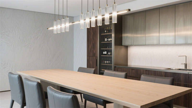 在公共區(qū)域,大堂以開闊通透的布局呈現(xiàn),大面積的落地玻璃引入充足自然光線,讓空間更顯明亮通透。接待區(qū)選用柔軟的布藝沙發(fā)與金屬質(zhì)感的裝飾擺件相搭配,既傳遞出溫馨的氛圍,又不失精致格調(diào)。走廊設(shè)計則注重引導(dǎo)性,墻面采用肌理感材質(zhì),搭配嵌入式燈光,營造出靜謐而優(yōu)雅的行走體驗。