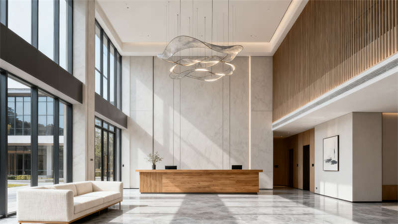 進(jìn)入室內(nèi),大堂區(qū)域?qū)挸髁?,淺灰與米白的主色調(diào)營造出干凈清爽的氛圍,搭配原木色元素增添溫馨感,合理的空間布局讓動線清晰流暢,接待區(qū)與休息區(qū)劃分明確,既滿足功能需求,又提升了整體的格調(diào)。?