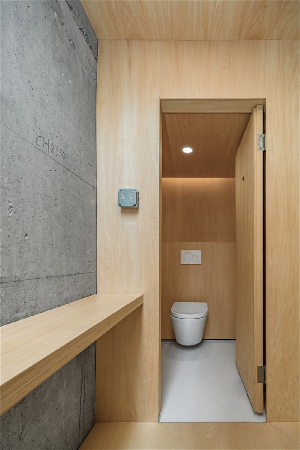 建筑四周圍繞著老式居民樓,為了使其呼應周圍居住環(huán)境的氛圍,特意保留了原有立面具有歷史質(zhì)感的青磚。此外,在外立面的門窗的位置和進深的設計上,結(jié)合整個建筑比例和室內(nèi)布局以數(shù)十厘米為單位進行了微調(diào),使得室內(nèi)視野開敞且采光充足。金屬窗框的更換和進深的加深則為民宿增添了空間浸入感。