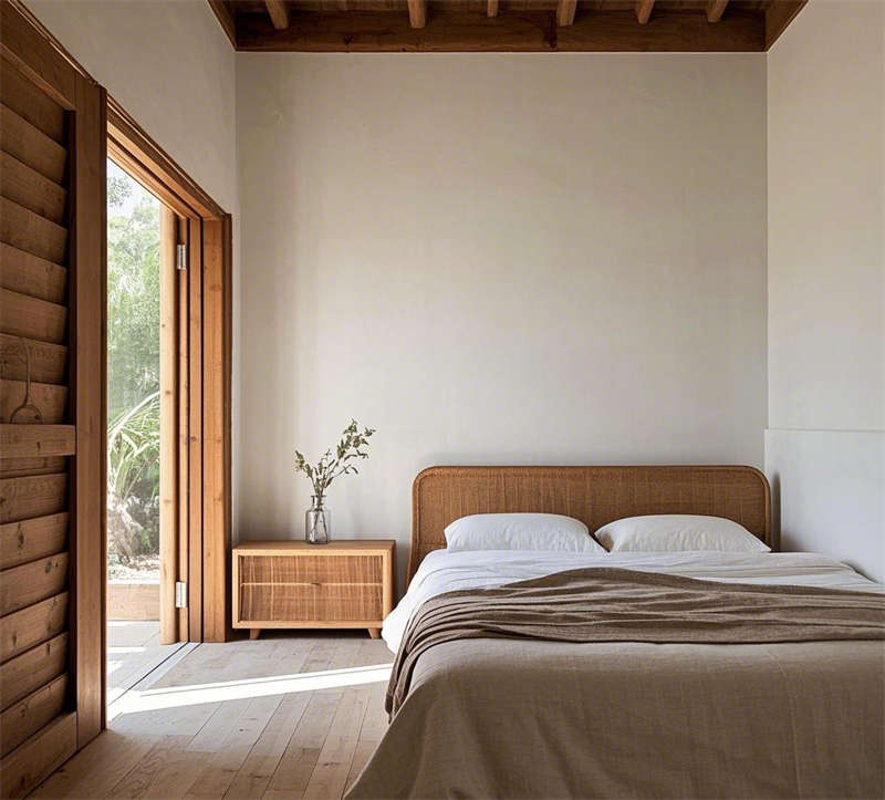 這套1000平民宿設計以自然簡約風格為核心,營造出溫暖舒適、貼近自然的居住體驗。整體空間以原木色調為主,搭配米白色、淺灰等柔和色彩,輔以綠植點綴,呈現(xiàn)出清新自然的氛圍。大堂以原木色前臺和藤編吊燈為亮點,搭配落地窗引入充足光線,營造出溫馨的迎賓空間??蛷d采用開放式布局,原木地板與編織地毯相得益彰,搭配圓形茶幾和落地燈,打造出輕松愜意的休閑區(qū)域。餐廳延續(xù)自然風格,長桌與藤編餐椅的組合簡潔大方,開放式廚房與吧臺的設計增強了空間的互動性。臥室分為兩種風格,一種以藤編床頭和棉麻床品為主,營造出舒適的睡眠環(huán)境;另一種采用日式榻榻米設計,搭配推拉門和竹林景觀,傳遞出寧靜禪意的氛圍。浴室同樣注重自然元素的運用,圓形浴缸與綠植的結合讓人仿佛置身于自然之中,而日式風格的浴室則通過竹制裝飾和庭院景觀,進一步強化了寧靜放松的體驗。戶外庭院以石板小路和木質平臺為主,搭配休閑桌椅和綠植環(huán)繞,為客人提供了一個親近自然的戶外休閑空間。整體設計注重材質與光影的運用,將自然元素與現(xiàn)代簡約風格完美融合,打造出一個舒適、放松的民宿空間。