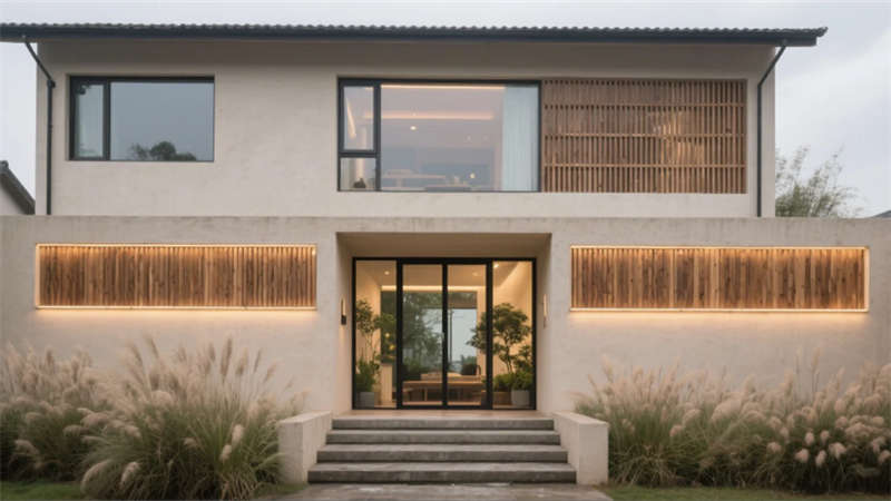 本案以“現(xiàn)代自然主義”為核心理念,將合肥山水肌理與當(dāng)代設(shè)計(jì)語言交融,打造一座會(huì)呼吸的城市棲居地。建筑外立面以淺米色微水泥為基底,橫向原木格柵與嵌入式線性光帶勾勒出簡(jiǎn)約輪廓,入口矮蒲葦隨風(fēng)輕搖,模糊室內(nèi)外界限。