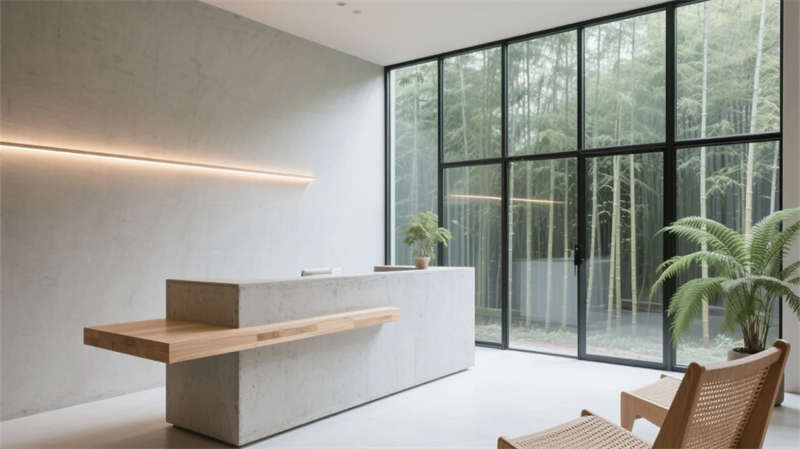 功能布局巧妙銜接室內(nèi)外呼吸感:接待廳玻璃幕墻引竹林入畫,禪茶室借枯山水凝神靜氣;餐廳與書吧以可移動家具實現(xiàn)場景轉(zhuǎn)換,暗藏式光源在夜間描摹空間輪廓??头吭O(shè)計強調(diào)私密療愈,星空穹頂與混凝土浴缸形成原始與現(xiàn)代的詩意碰撞。