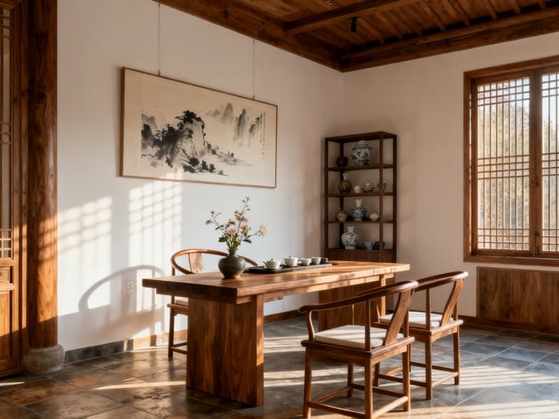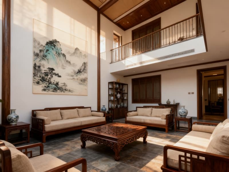 本設(shè)計(jì)以中式新古典風(fēng)格為核心,為合肥民宿勾勒出兼具古韻與雅致的居住空間。外觀設(shè)計(jì)融入傳統(tǒng)建筑的對稱美學(xué),青瓦與木構(gòu)相映,清晨柔光灑落時,墻面與門窗的線條更顯溫潤,搭配門前錯落的綠植,悄然營造出清幽靜謐的氛圍,既保留中式韻味,又不失現(xiàn)代居住的舒適感。?
