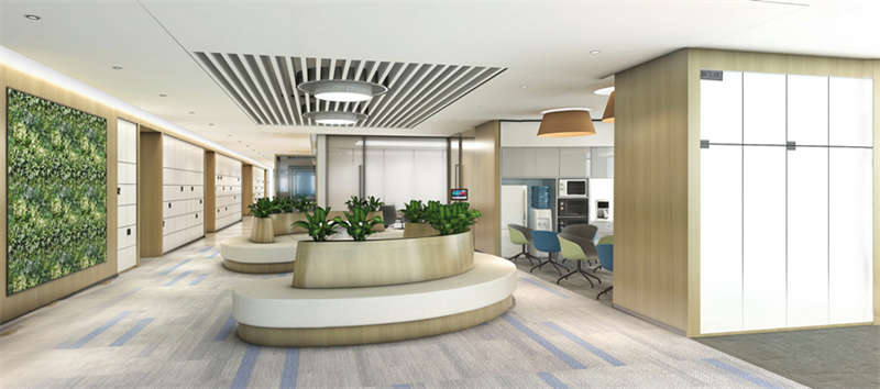本辦公室裝修項目中,接待大廳,會議中心,以及茶水間和共享辦公處,均安排了數(shù)字化的管理和設計。同時打破原來傳統(tǒng)的深色木飾面、奢華花色大理石設計風格,用了淺木色、白色大理石、科技感的陽極氧化鋁板和轉印鋁格柵,整體格調(diào)充滿高級感。一些工位設置共享工位,大大提高了工位的使用率。共享工位,可以設置很多的式樣:卡座、沙發(fā)、創(chuàng)意工位等,這樣共享工位不僅是工位,還可以是休閑討論區(qū)。會議區(qū)的模塊化設計,可移動式隔斷,充分滿足員工工作需求,進行合理分割。