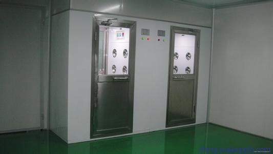 風(fēng)淋室是一種通用性較強的局部凈化設(shè)備,安裝于潔凈室與非潔凈室之間。當(dāng)人與貨物要進入潔凈區(qū)時需經(jīng)風(fēng)淋室吹淋,其吹出的潔凈空氣可去除人與貨物所攜帶的塵埃,能有效的阻斷或減少塵源進入潔凈區(qū)。風(fēng)淋室/貨淋室的前后兩道門為電子互鎖,又可起到氣閘的作用,阻止未凈化的空氣進入潔凈區(qū)域。