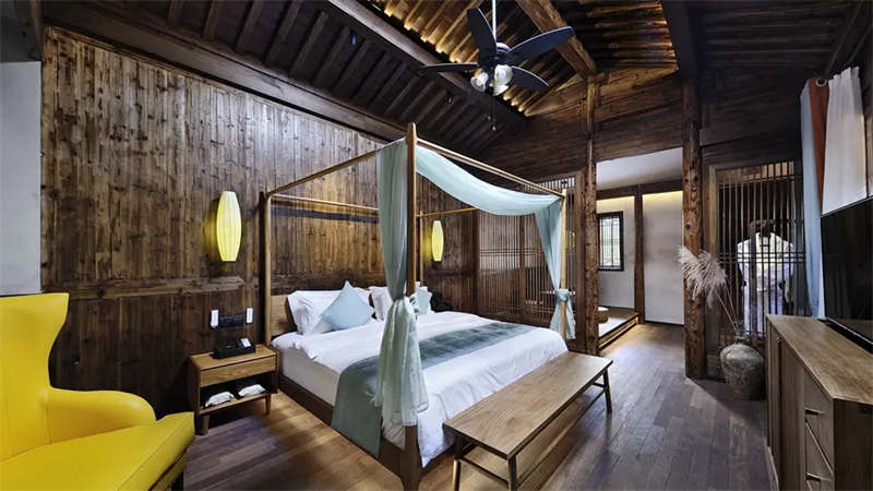 安徽黃山民宿設(shè)計(jì)在整體空間的把控上,色彩、架構(gòu)、家具陳設(shè)力求統(tǒng)一渾然,木飾配合精選的現(xiàn)代裝飾主義陳設(shè)系統(tǒng),分別以新中式、復(fù)古,北歐等風(fēng)格為基調(diào),搭配簡約現(xiàn)代的空間來表現(xiàn),終形成了既大相徑庭又和諧統(tǒng)一的客房裝修方案,并為業(yè)主創(chuàng)造了良好的經(jīng)營成果。