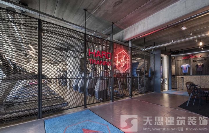 Metabolik作為新一代健身俱樂(lè)部,空間里氣氛很暗,設(shè)計(jì)師大量使用混凝土,焊接的原材料,膨脹或穿孔的金屬,營(yíng)造了一種工業(yè)的氛圍。