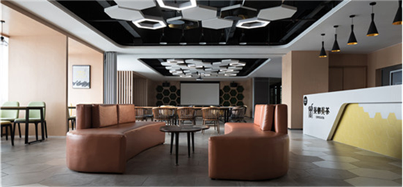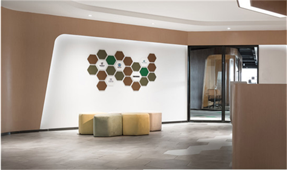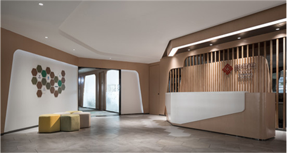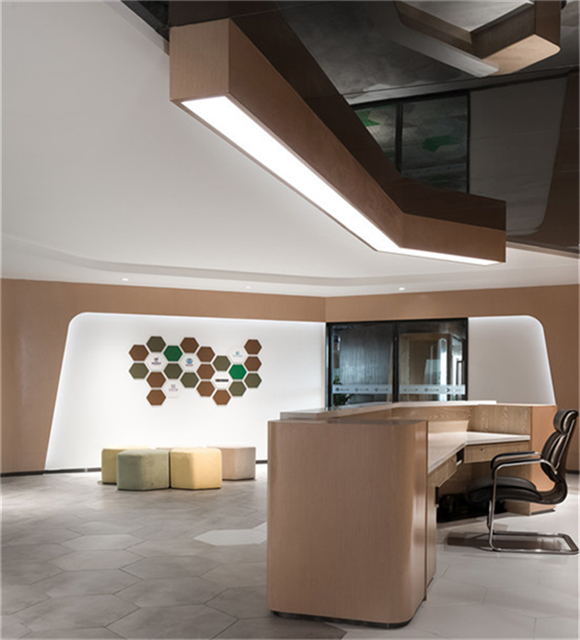 通過空間調(diào)度,模糊各個工作區(qū)域間的界限,打造既開放、又不乏私密性的辦公區(qū)。除此之外,曲線與直線在空間共存,線條的形式感使辦公室充滿現(xiàn)代化與創(chuàng)意十足,極大的在視覺上滿足了客戶的營銷訴求,構(gòu)建來人第一感性認(rèn)知。