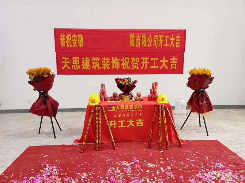 天思裝飾在此攜全體員工恭祝安徽一2000平科技廠房開工大吉?。?!感謝業(yè)主對我們天思建筑裝飾的信任,我們必不負(fù)所托,保證工程的效率與質(zhì)量,將項(xiàng)目完美完成,交給客戶一份滿意的答卷!