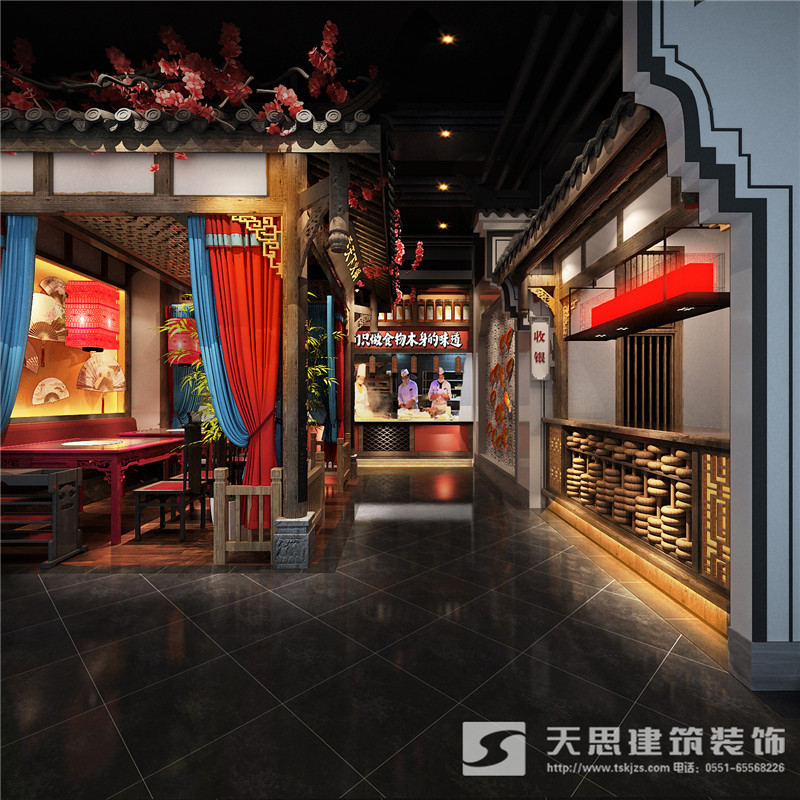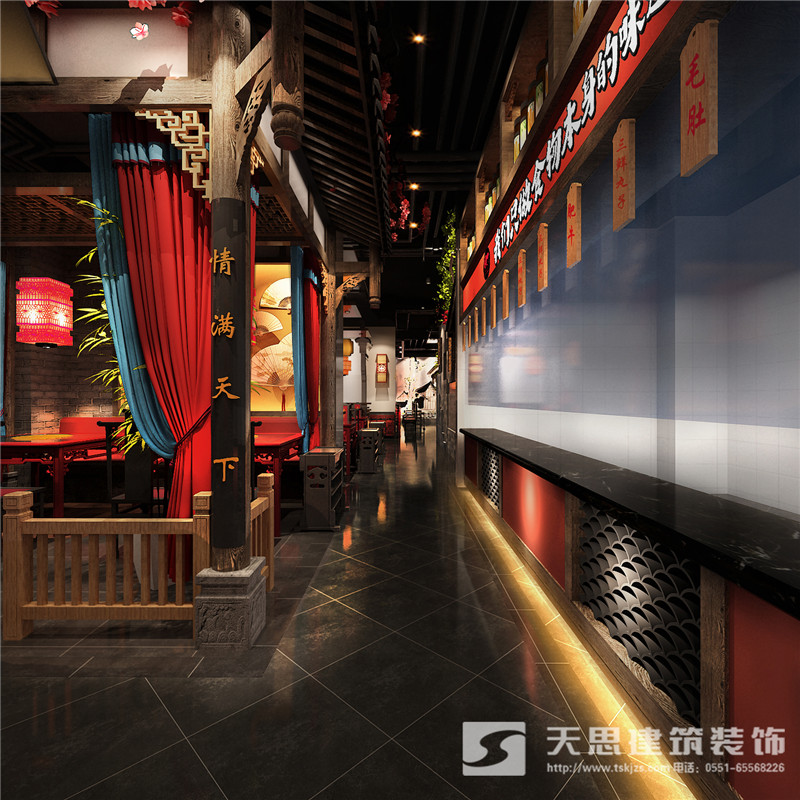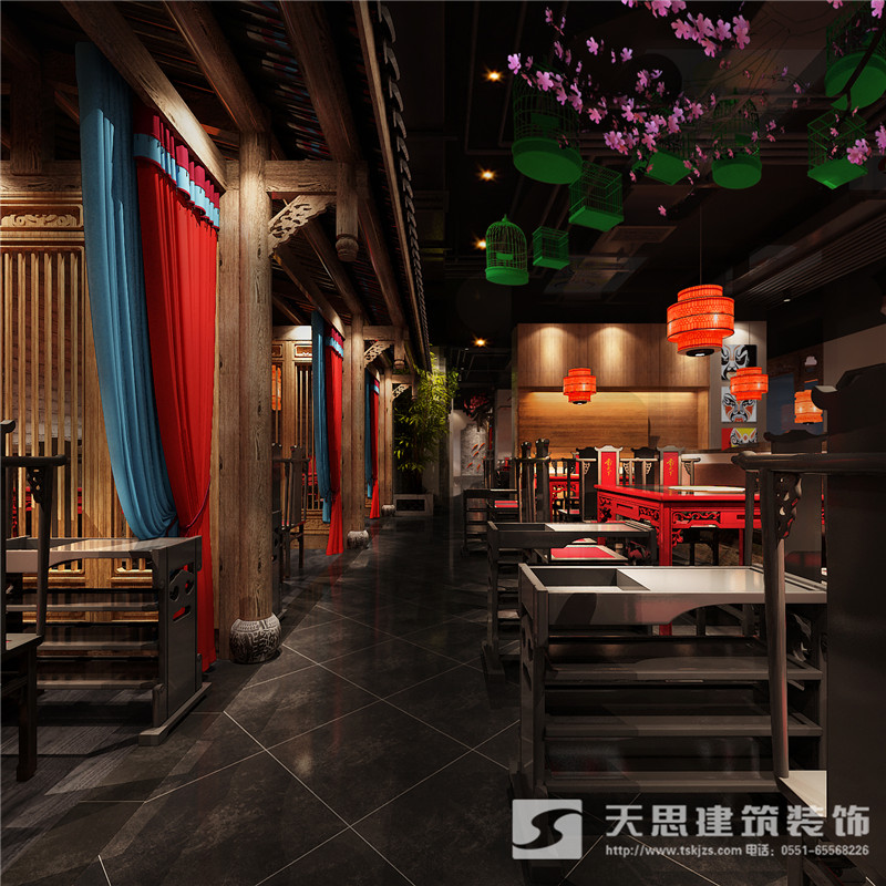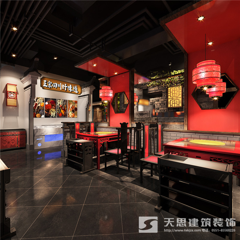 本次為合肥香天下火鍋店分店徽淮南店裝修設(shè)計效果,在本次火鍋店設(shè)計中,設(shè)計師采用新中式做為空間設(shè)計風(fēng)格,設(shè)計師希望讓客戶在這里感受到不一樣的氛圍。
