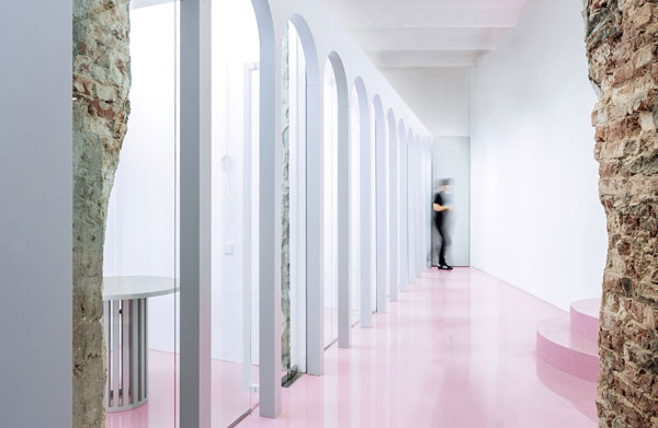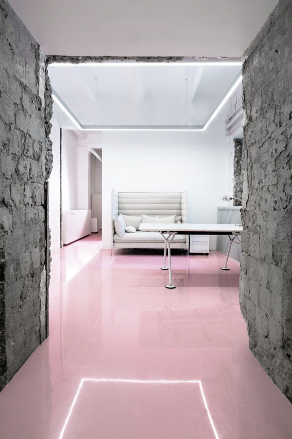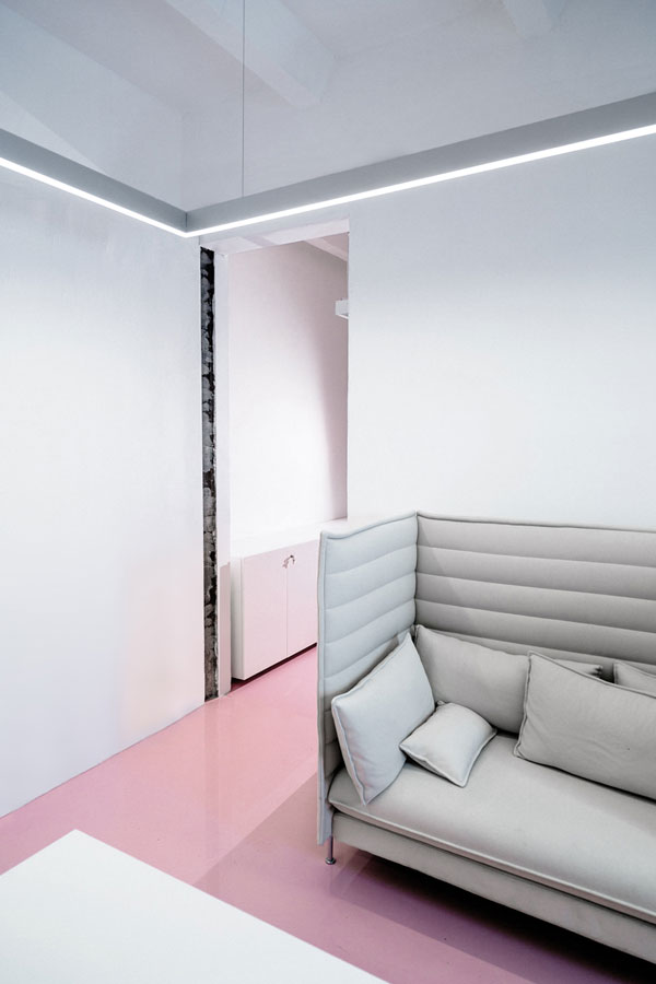 下面這個粉嫩嫩的辦公空間是NGRS獵頭公司位于莫斯科市中心的總部,鄰近紅場和克里姆林宮。該辦公室室內設計采用了單一的白色色調,并在地板上大面積的使用了柔和溫馨的粉色。該公司的職員90%是女性,這個萌發(fā)少女心的色彩方案以及半圓形臺階及拱門的設計得到了職員的一致好評。