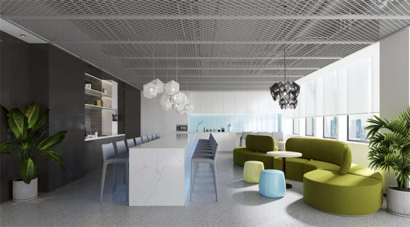 一般用在過(guò)道多用,但也有被采用于開放式辦公室吊頂和員工活動(dòng)區(qū)域。這種材料通常是用鋁合金制造,飾面多為噴涂或烤漆,色彩品種較多,選擇境地很大,網(wǎng)格的大小可根據(jù)需求定做。