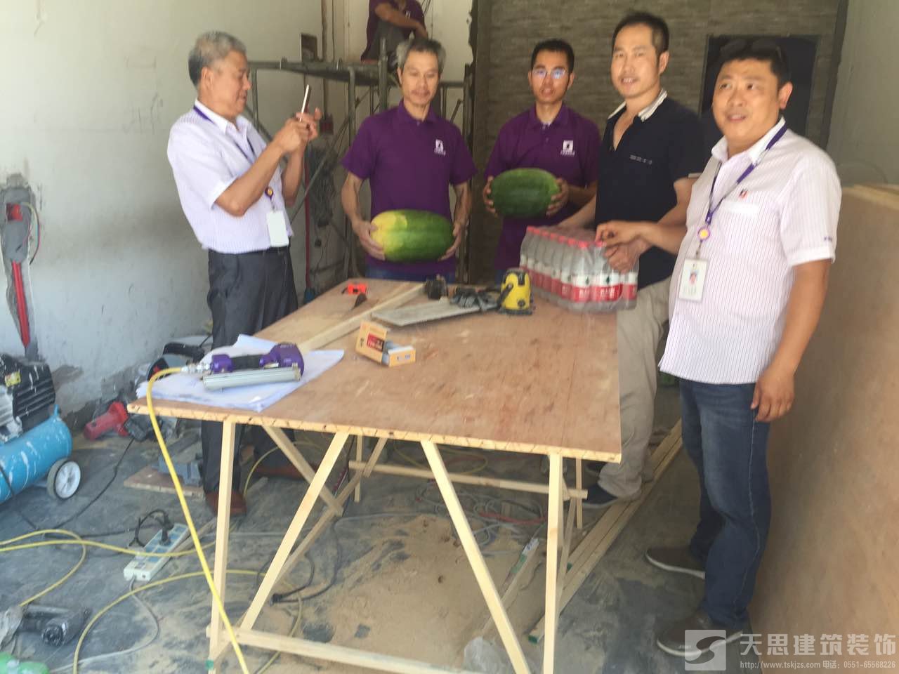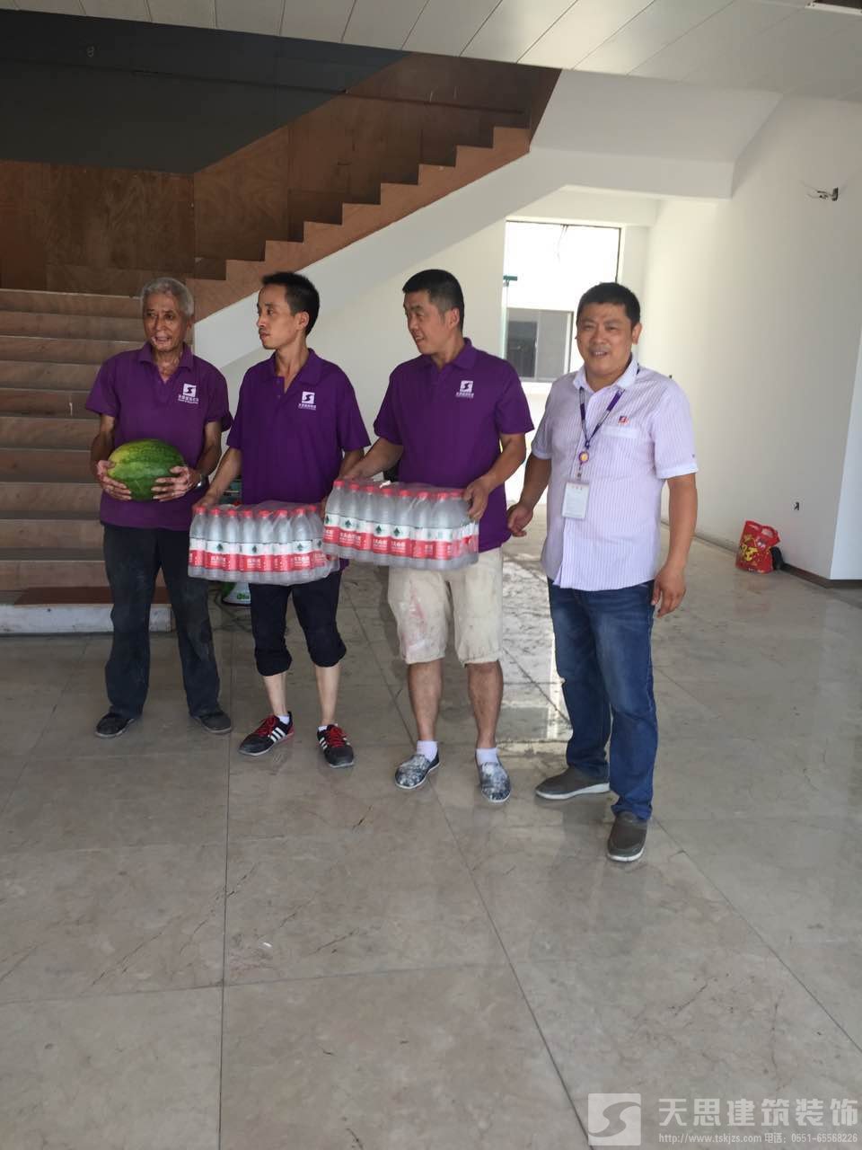 天思建筑裝飾公司為工作在第一線的天思項(xiàng)目經(jīng)理及工人送一點(diǎn)點(diǎn)小小的慰問(wèn)品,謝謝你們的付出,你們辛苦了。天思一行對(duì)大家為趕工期、保質(zhì)量所付出的辛苦表示衷心感謝,并囑咐工地負(fù)責(zé)人要愛(ài)護(hù)裝修工人的身體,在保質(zhì)量為首要前提下抓好安全施工。施工盡量利用早、晚時(shí)間,盡量避開(kāi)高溫時(shí)段;若發(fā)現(xiàn)有身體不適,要及時(shí)注意休息,情況嚴(yán)重的要及時(shí)送醫(yī)。