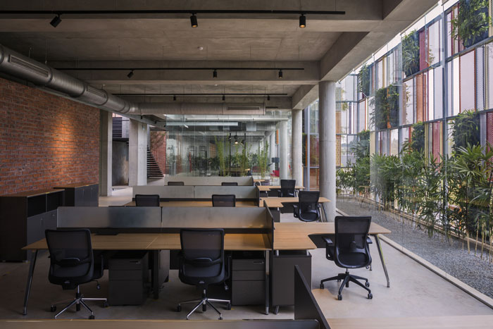 本次為工廠辦公大樓辦公室裝修設(shè)計(jì)效果圖,辦公室設(shè)計(jì)面積4000平方,設(shè)計(jì)師在辦公室設(shè)計(jì)中,以現(xiàn)場(chǎng)環(huán)境保持一致為前提,目的就是打造一個(gè)融合與廠房的辦公樓,而不是一個(gè)獨(dú)立的裝飾。