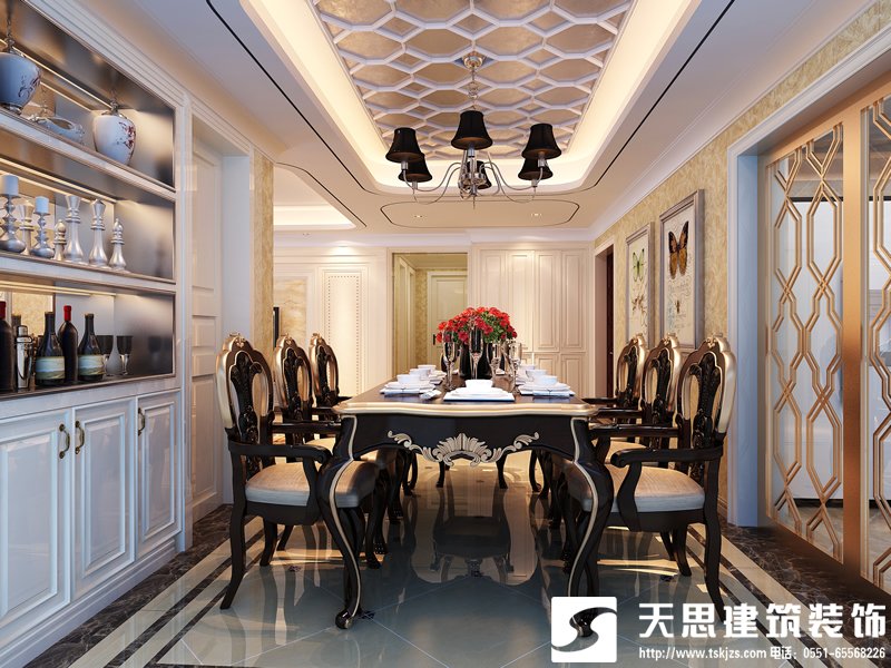 簡介:本案中采用了簡歐的設計手法。簡歐風格從簡單到繁雜、從整體到局部,精雕細琢,鑲花刻金都給人一絲不茍的印象。餐廳花格吊頂增強了主人家中的層次感,讓整體空間更顯豐富,臥室和書房透式處理更是展現(xiàn)主人對于空間的追求,整體的設計盡顯歐式的奢華和大氣。