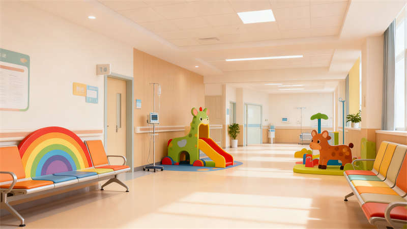 住院區(qū)域的裝修兼顧溫馨感與功能性,病房內(nèi)布置溫馨的床品與收納空間,同時預(yù)留足夠的活動區(qū)域,方便孩子在室內(nèi)活動。走廊兩側(cè)墻面設(shè)置趣味互動裝置與科普小知識展示區(qū),讓孩子在行走過程中能獲得樂趣與知識。游樂區(qū)裝修則以安全為首要原則,地面采用防滑材質(zhì),游樂設(shè)施經(jīng)過特殊處理,確保孩子在玩耍時的安全,同時通過豐富的色彩與造型,為孩子打造專屬的歡樂空間。整體裝修設(shè)計將醫(yī)療功能與兒童友好理念深度融合,為合肥這座城市的孩子們打造出一個充滿關(guān)愛與溫暖的就醫(yī)環(huán)境。?