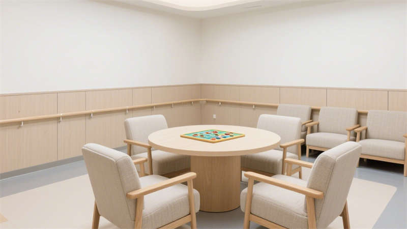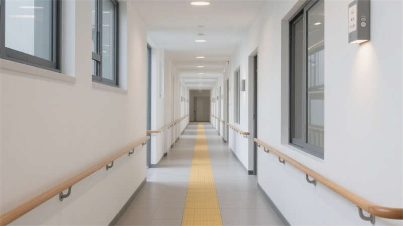 本設(shè)計(jì)聚焦養(yǎng)老院室內(nèi)空間的適老化需求與現(xiàn)代審美融合,從居住者的實(shí)際生活場(chǎng)景出發(fā),打造兼具安全性與舒適度的環(huán)境。在公共活動(dòng)區(qū)域,采用無高差地面設(shè)計(jì),搭配防滑耐磨的地面材質(zhì),避免老人行走時(shí)發(fā)生磕碰或滑倒;墻面安裝便于抓握的扶手,扶手高度與間距經(jīng)過精心考量,貼合老人起身、行走時(shí)的支撐需求,同時(shí)扶手外觀融入現(xiàn)代簡(jiǎn)約線條,不顯突兀。?