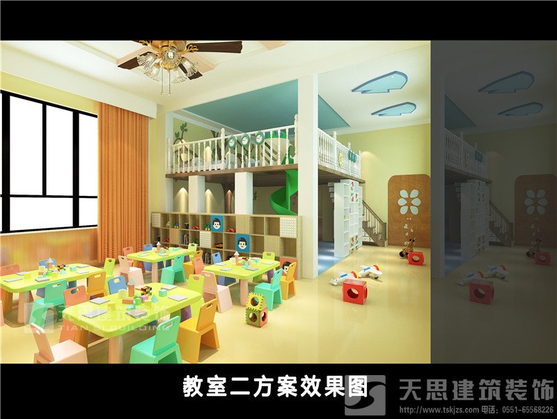 幼兒園裝修要充分考慮色彩搭配的和諧,體現(xiàn)高雅、理性與幼兒天性相融合的色彩理念。在裝修中盡量保留建筑原有的白墻面,主要家具也以較多白色塊面來協(xié)調(diào)艷麗色塊,造成亮麗、活潑、雅致的色彩效果。