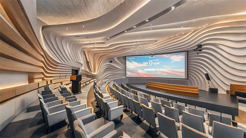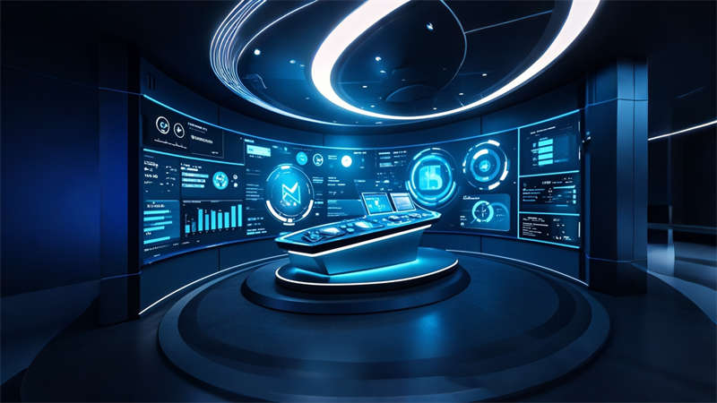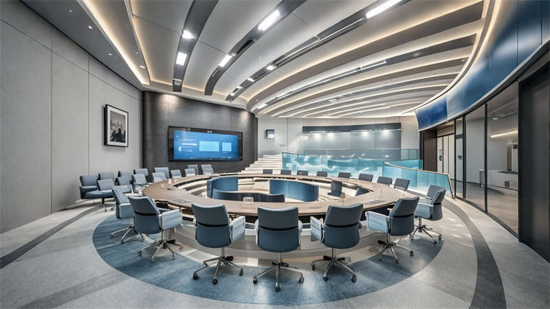 本 3000㎡辦公樓展廳采用 ' 科技人文 ' 設(shè)計(jì)理念,以灰白色為基調(diào),企業(yè)藍(lán)為點(diǎn)綴色,打造現(xiàn)代簡約風(fēng)格??臻g規(guī)劃采用 ' 展辦融合 ' 模式,前廳設(shè)置 10 米通高數(shù)字藝術(shù)墻,產(chǎn)品區(qū)配置智能感應(yīng)展臺(tái)。辦公區(qū)采用模塊化家具系統(tǒng),搭配聲學(xué)處理隔斷。動(dòng)線設(shè)計(jì)運(yùn)用環(huán)形參觀路線,通過藍(lán)色導(dǎo)視光帶串聯(lián)各功能區(qū)。材質(zhì)選用啞光金屬、木飾面與玻璃的混搭,科技感與溫潤感并重。照明系統(tǒng)采用 4000K 色溫 LED 線性燈,重點(diǎn)區(qū)域搭配軌道射燈。智能中控系統(tǒng)集成環(huán)境調(diào)節(jié)、安防監(jiān)控和數(shù)字展示功能,實(shí)現(xiàn)空間高效運(yùn)營。綠植墻和透光軟膜天花的設(shè)計(jì),有效改善室內(nèi)微氣候。