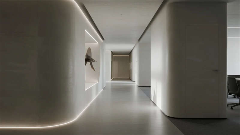 本設(shè)計以現(xiàn)代簡約語言重構(gòu)辦公展示空間,摒棄冗余裝飾,用微水泥的質(zhì)樸肌理與金屬的精致光澤形成對話。線性光帶貫穿空間,勾勒出清晰的建筑輪廓,同時營造輕盈的科技感。大量留白處理賦予空間呼吸感,使產(chǎn)品展示與人文辦公自然融合。玻璃隔斷的應(yīng)用模糊了功能區(qū)域的邊界,形成通透連續(xù)的視覺體驗。精心調(diào)配的自然光照與人工照明系統(tǒng),在不同時段呈現(xiàn)細膩的光影層次。軟裝選用低飽和度色調(diào),搭配溫潤木元素與綠植,平衡科技空間的冷靜感,最終打造出一個既體現(xiàn)專業(yè)氣質(zhì)又蘊含人文溫度的現(xiàn)代辦公展廳。